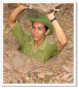 Im Cu Chi Gebiet hatte sich der vietnamesischen Partisan während des Vietnamkriegs in den 60-ziger Jahren eingegraben. 250 Kilometer Tunnel sind angelegt worden um sich verstecken zu können, aber auch um von dort aus Angriffe "aus dem Nichts" starten zu können. Die Tunnel waren sehr schmal und häufig auch sehr tief. In den Tunneln lebte man ganz normal; es gab Wohnräume, Küchen, Vorratslager für Munition, Waffenfabriken und Kommandozentralen. Auch gab es viele Fallen und Scheineingänge, um so den Feind zu verwirren.